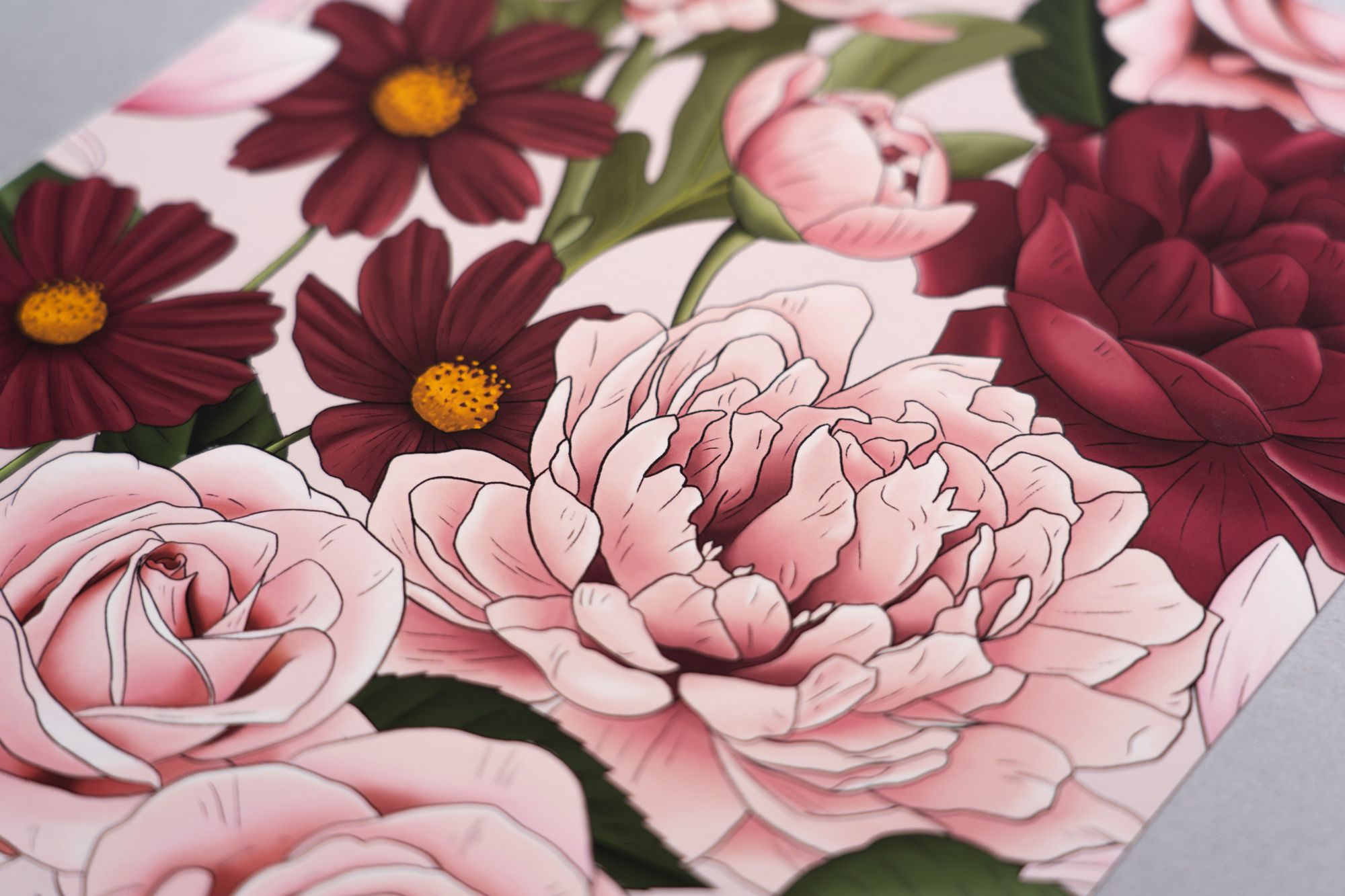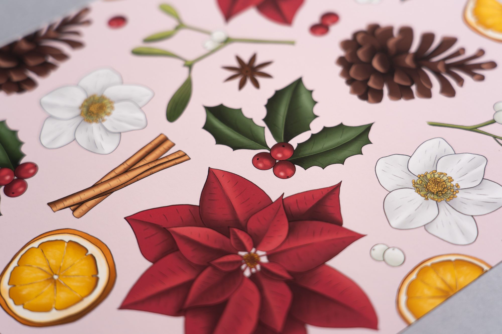 I've added quite a few floral and botanical illustrations to my collection now, and over the last few days I have been working on some brand new patterns - including Christmas! Themain goals when i started drawing was to design a floral illustrations for a 2024 calendar, so I had to draw at least 12 flowers! Well, I did that and more - some drawings I did for the calendar I wasn't quite happy with, so ending up doing multiple versions.