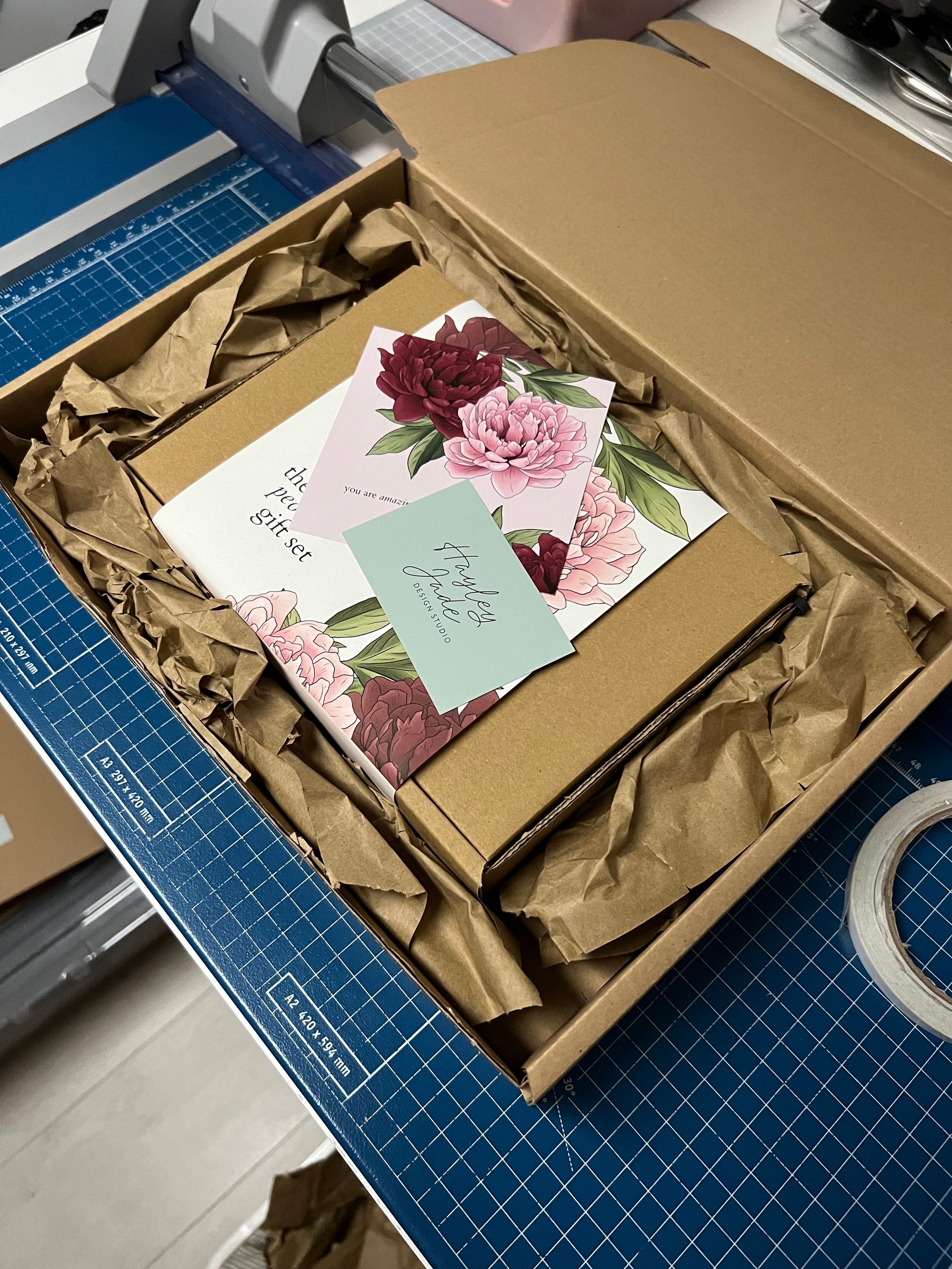 My main go to products for keeping my products plastic free when packaging are glassine envelopes and tissue paper, even for things like washi tape! My washi tape arrive with me unwrapped, so when I get an order for one, I wrap it in tissue paper, holding it together with a sticker. I know this is not a practical method for if you did want to wholesale them, but options such as creating cardboard sleeves or boxes where you can see the print is an option, instead of having every single roll individually wrapped in a plastic that is most likely not biodegradable.