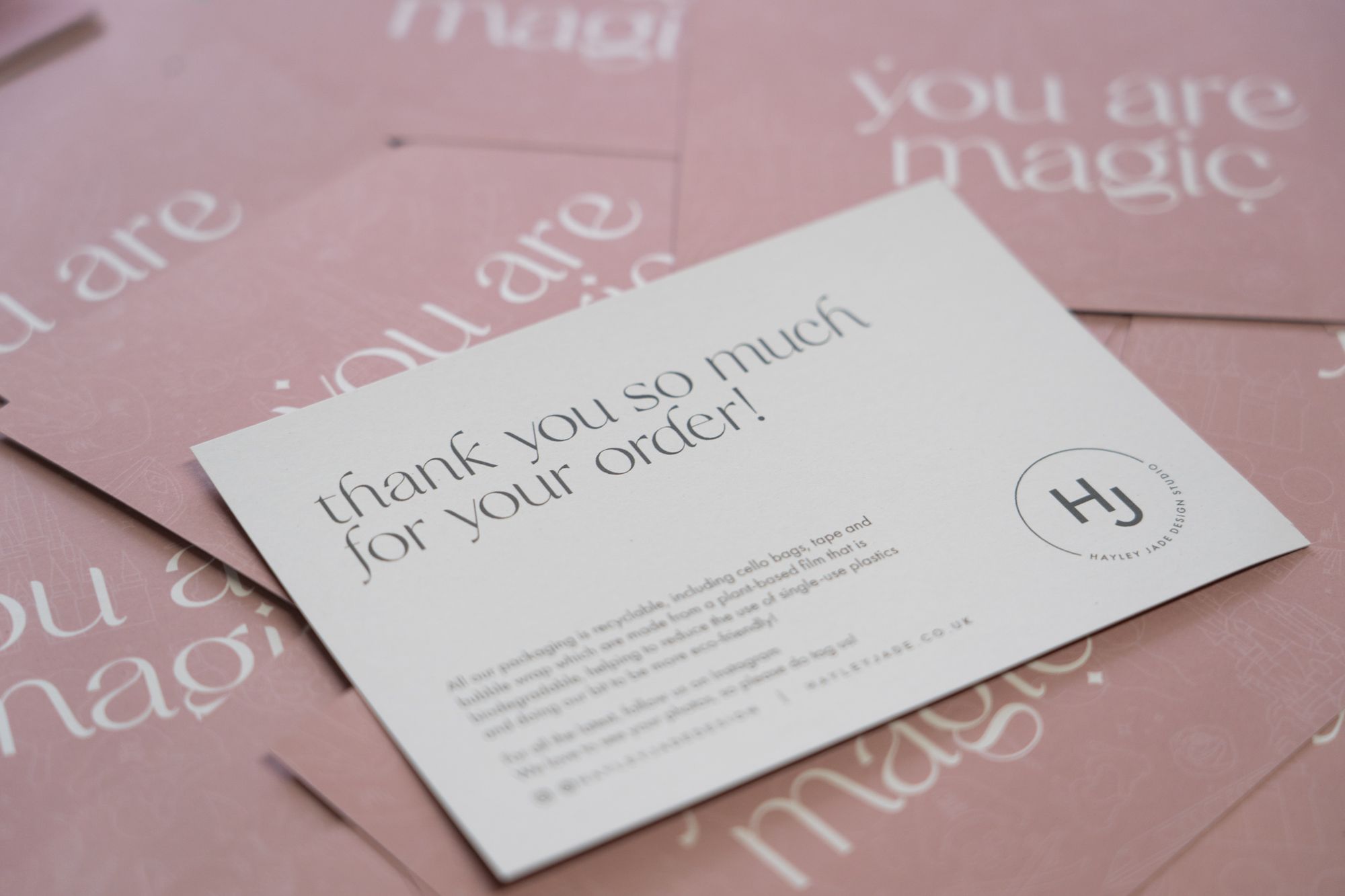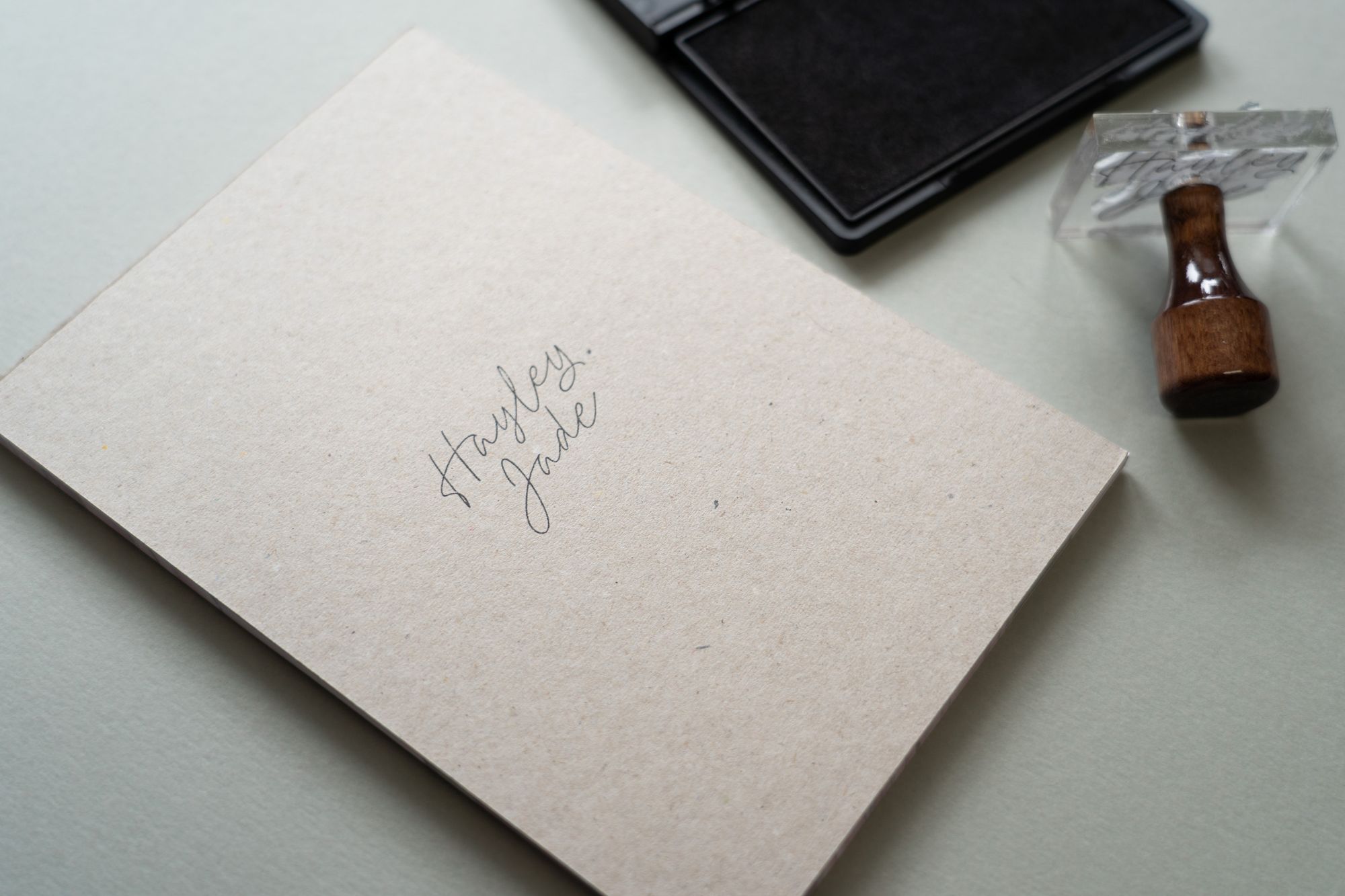 The above is the logo I created for my business in 2018 and I currently still use the main logo (the full name) now! Grey, with accents on pink were my brand colours. I used to use the hj ligature in place of where I use the current round logo, and even used to spend so much time stamping tissue paper! I don't think I would have the patience to do that now.