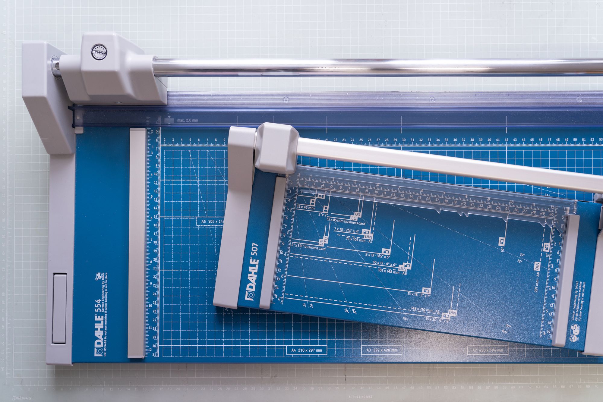 I would be lost without a paper trimmer. I tend to buy most of my paper/card stock in bulk in large sizes (usually B1), so I needed a large paper trimmer to be able to cut this size of paper down, and I've had my Dahle 554 Trimmer for 3 and 1/2 years now and it's still going strong. I did recently buy a smaller trimmer from the same brand for cutting smaller products (such as tags and bookmarks), which is really handy.