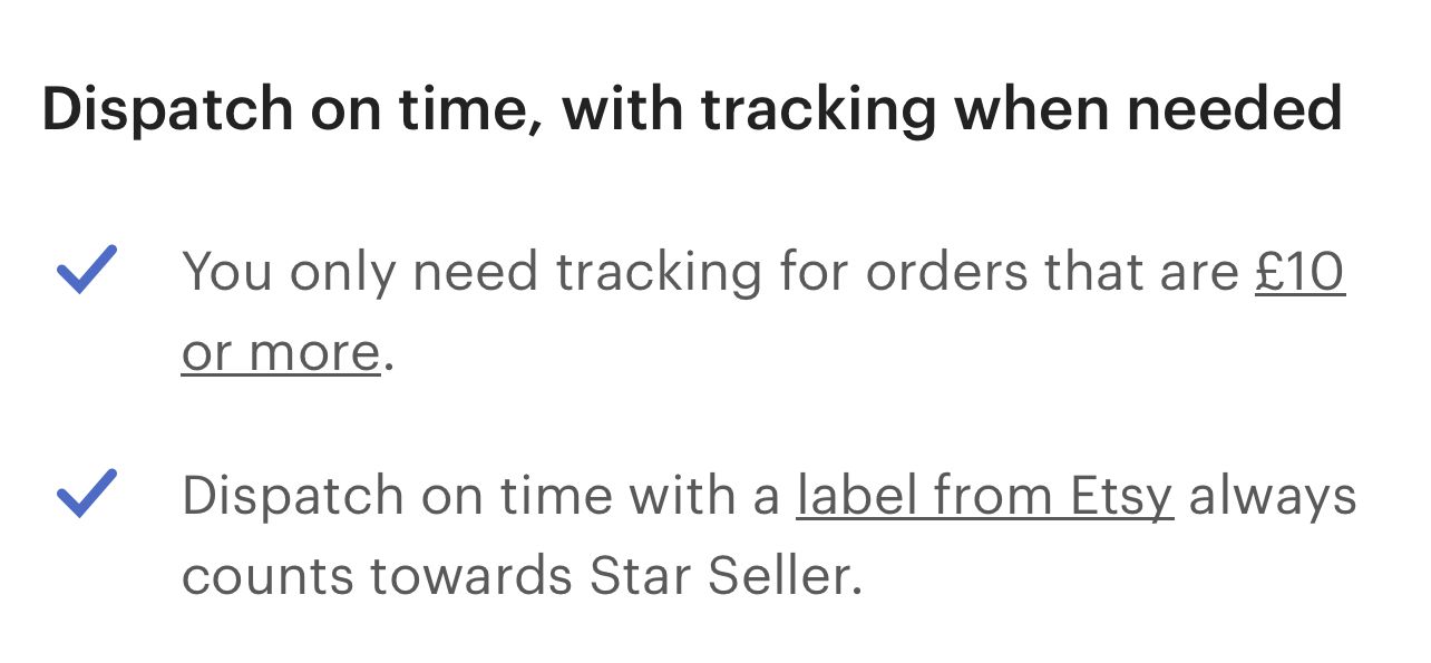 It also doesn’t take into account that some businesses, including myself, have business accounts with Royal Mail etc., so it makes absolutely zero sense for me to purchase labels through Etsy, which also counts towards star seller.